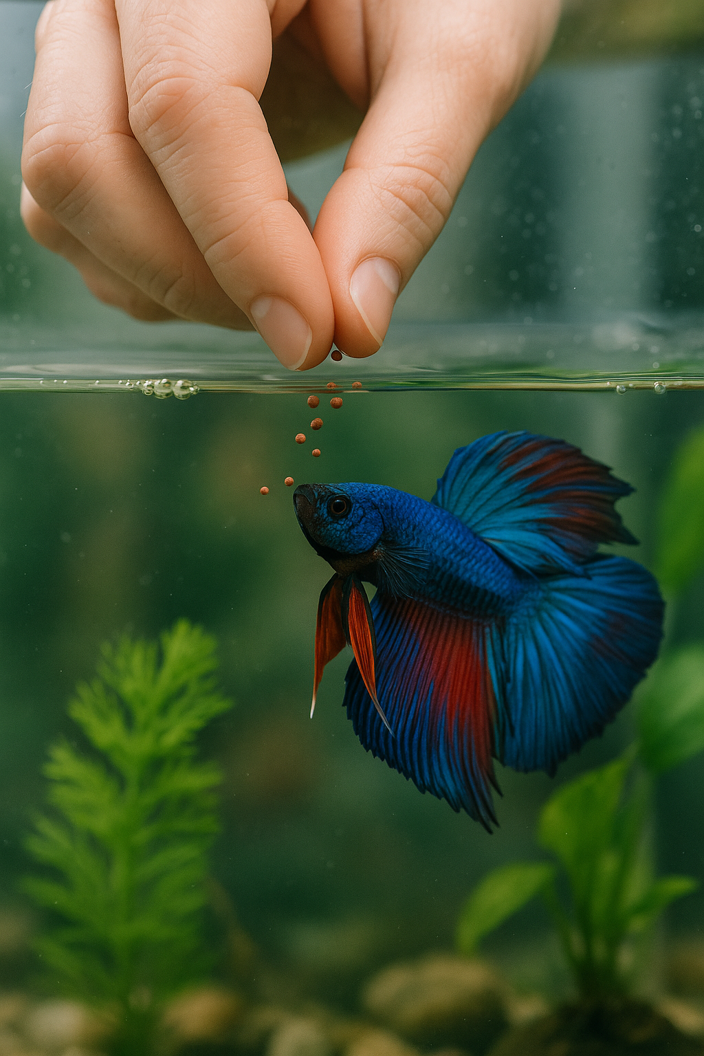 Start with 2–3 pellets, once or twice a day depending on your Betta’s size and activity. Remove uneaten food after a few minutes to keep your tank clean.